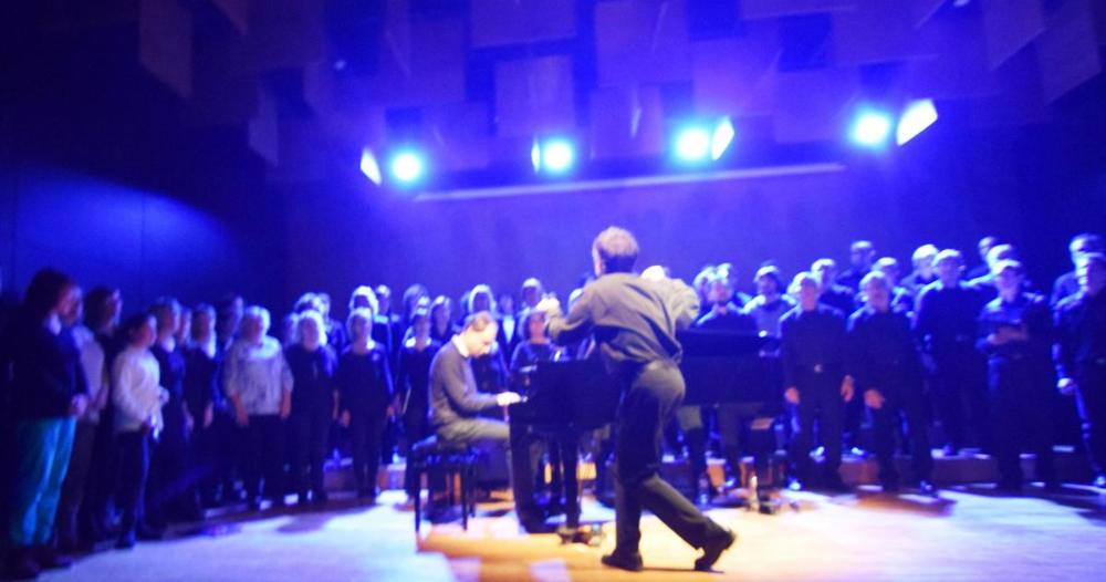 L’Espai Orfeó de Lleida es va omplir, el passat 14 de novembre, per gaudir d’una experiència musical a les fosques. La Coral Maristes i el pianista cec Marc Sarrato van estrenar l’espectacle Música amb els cinc sentits, una proposta musical inclusiva en la qual els espectadors van viure una experiència pròxima al món de les persones amb discapacitat visual greu.