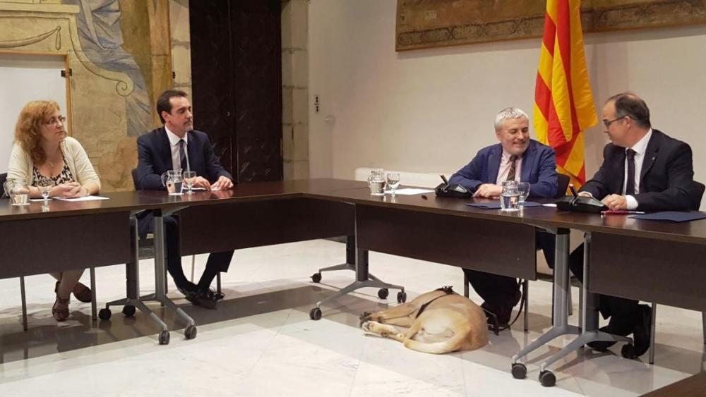 L'acord marc, en el qual s'inclou també a la Fundació ONCE per a l'Atenció de Persones amb Sordceguesa (FOAPS) i l’Asociación Inserta Empleo, el van signar Jordi Turull, conseller de la Presidència de la Generalitat de Catalunya i Xavier Grau, delegat territorial de l'ONCE a Catalunya, el passat 20 de juliol. També van ser presents Enric Botí, president del Consell territorial; Rosa Díaz, sotsdelegada territorial; Manel Eiximeno, director del CRE ONCE Barcelona; Dolors Luna, cap dels Serveis Socials d'ONCE Catalunya i Enric Opi, director d' Inserta Empleo de Catalunya i Balears.